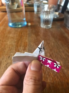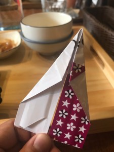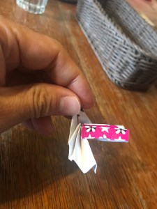- 對折後同摺紙鶴般把頭的部分摺出就完成了