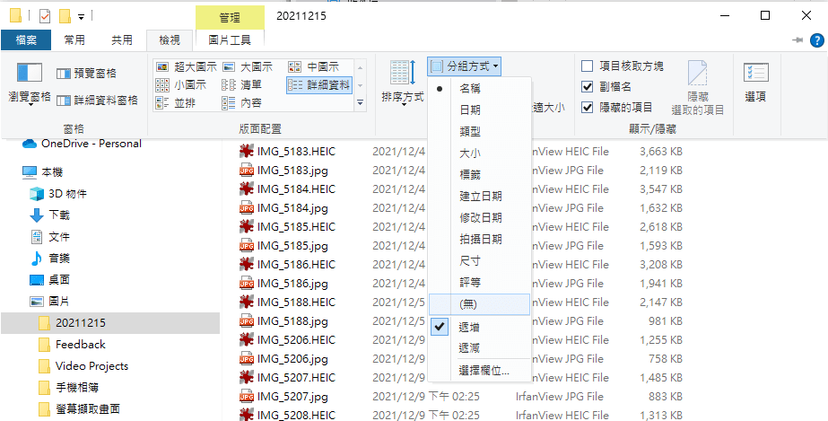 檔案總管上方的[檢視]–>[分組方式]–>勾選[(無)] 即可