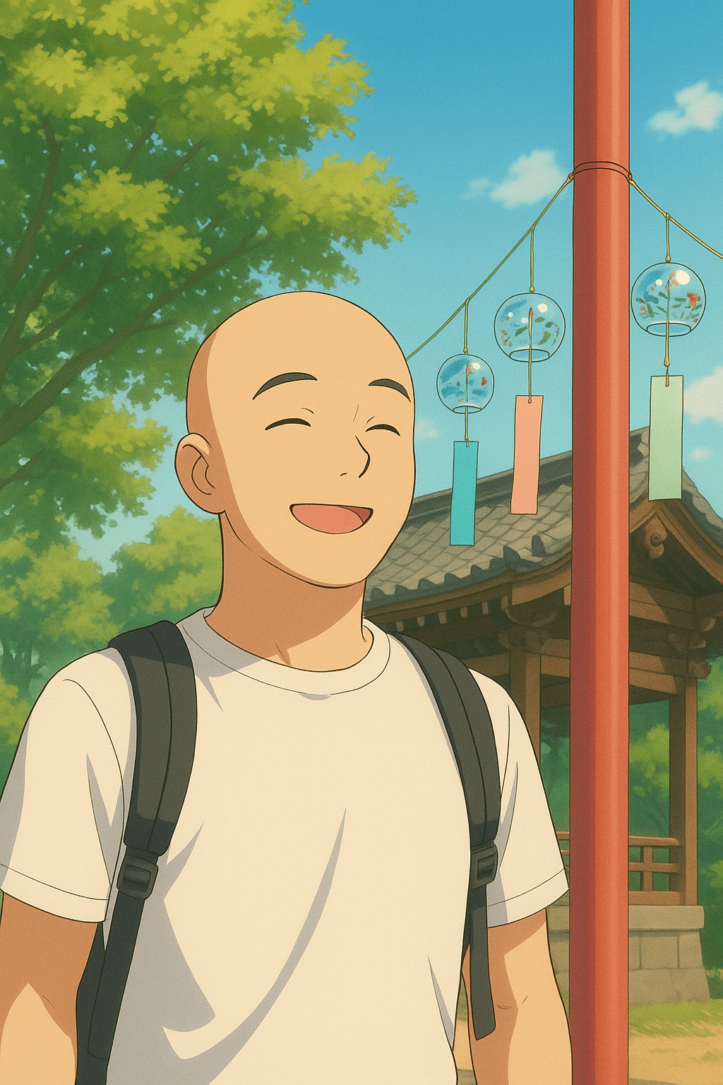 to look up at wind chimes swaying in a shrine—